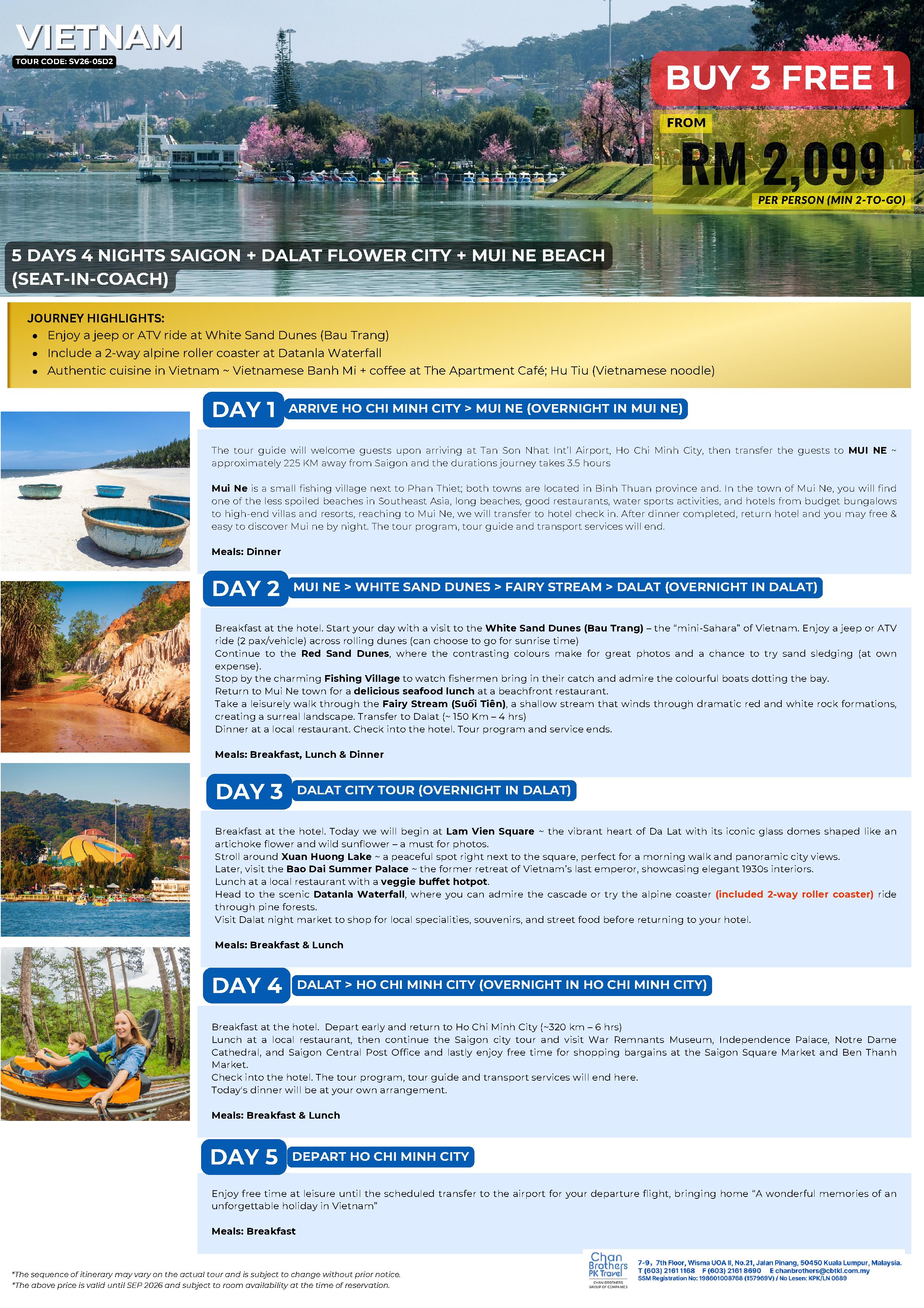 Saigon-Dalat Flower City-Mui Ne Beach (Seat In Coach 散拼团)